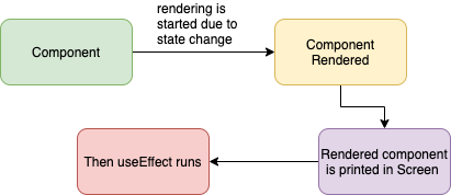 아래 그림과 같이 컴포넌트들이 render와 paint 된 후 비동기적으로 실행된다. paint 된 후 실행되어 리렌더링 되기 때문에 사용자는 화면의 깜빡임을 볼 수 있다.