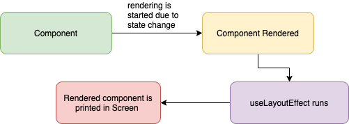 useLayoutEffect는 useEffect와 구문이 똑같기 때문에 다른 점이 무엇인지 구분하는 것이 중요하다. 가장 큰 차이는 useEffect는 비동기적으로, useLayoutEffect는 동기적 실행된다는 것이 다르다.